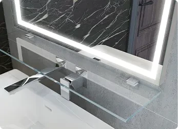 Presentamos un espejo de baño LED único que impresiona por su diseño y funcionalidad. Un hermoso espejo de baño con retroiluminación LED te llevará al futuro. El cristal oculta la electrónica, perfectamente protegida contra la humedad.
